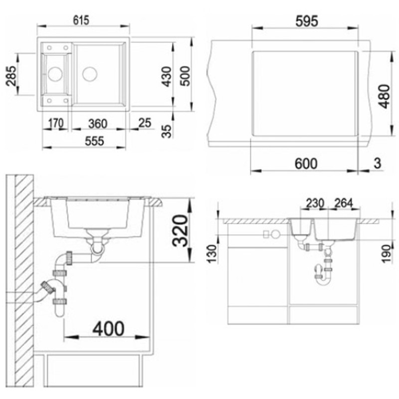 - общий размер: 61.5 х 50 х 19 см, размеры чаш: 36 х 43 х 19 см, 17 х 28.5 х 13 см