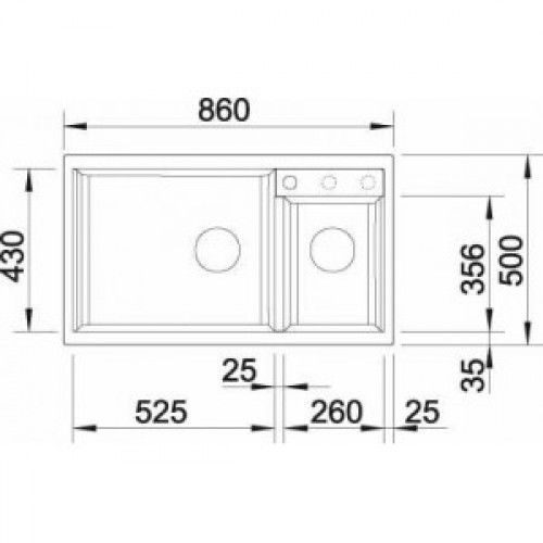 - общий размер: 86 х 50 х 19 см, размеры чаш: 52.5 х 43 х 19 см, 26 х 35.6 х 13 см