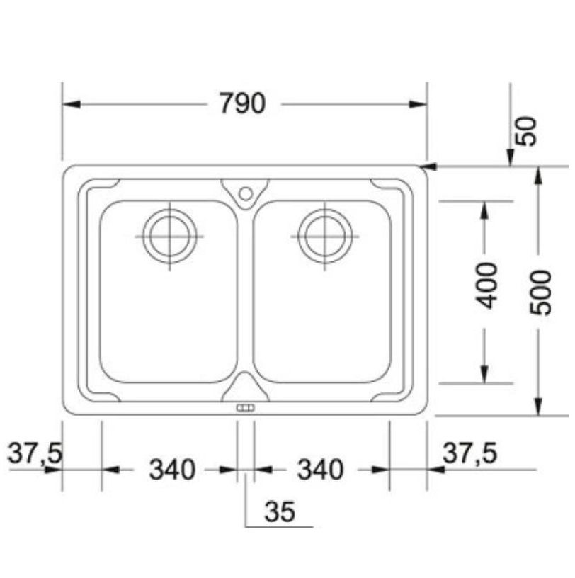 - общий размер: 790 х 500 х 190 мм, размер чаши: 340 х 400 х 190 мм