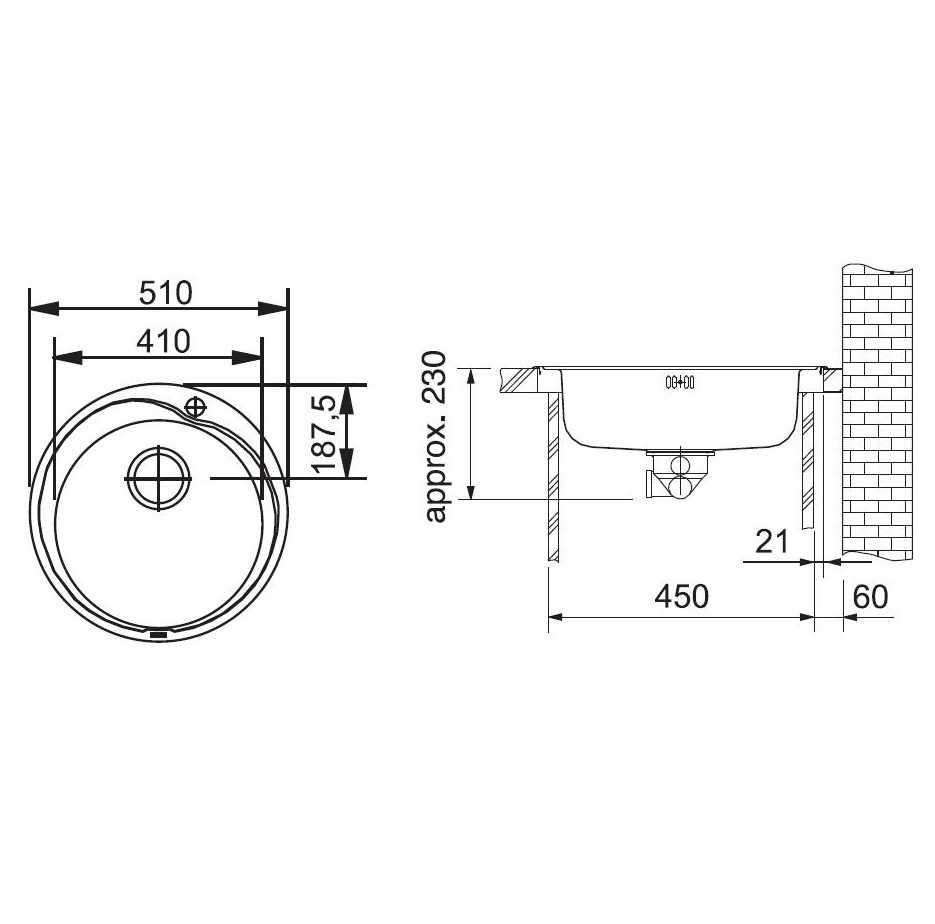 - размер: Ø 510 х 175 мм, размер чаши: Ø 410 х 175 мм