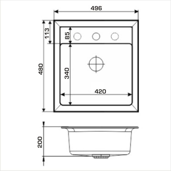 - общий размер 496 х 480 мм, чаша 420 х 340 мм, глубина 200 мм