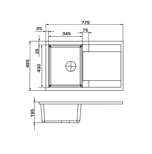 - общий размер 775 х 495 х 195 мм, размер чаши 430 х 345 х 195 мм