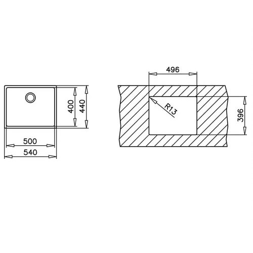 - общий размер: 540 х 440 х 200 мм, размер чаши: 500 х 400 х 200 мм