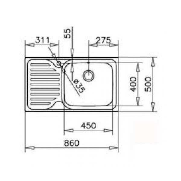 - общий размер: 860 х 500 х 200 мм, размер чаши: 450 х 400 х 200 мм