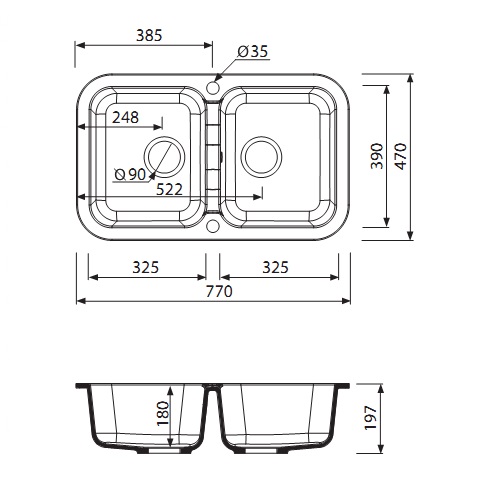 - размер чаш: 325x390x180 мм, 325х390х180 мм