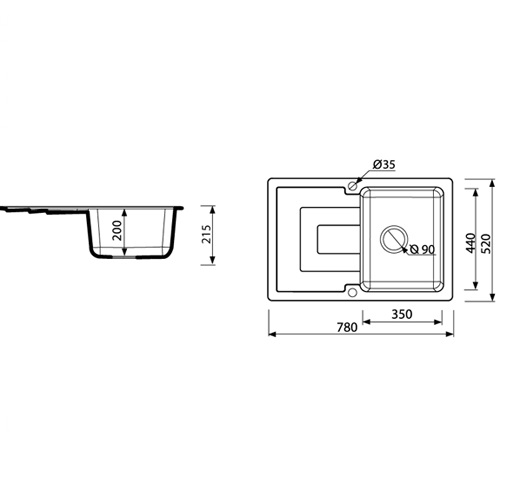 Врезная мойка с одной чашей. В комплект также входит сливная арматура, канализационный сифон и автоматический клапан.