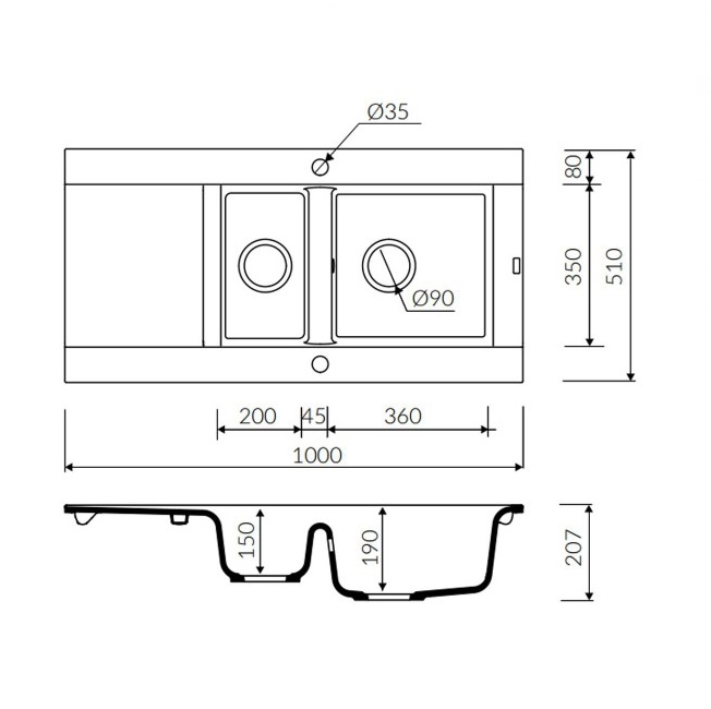- размер: 1000 х 510 х 207 мм