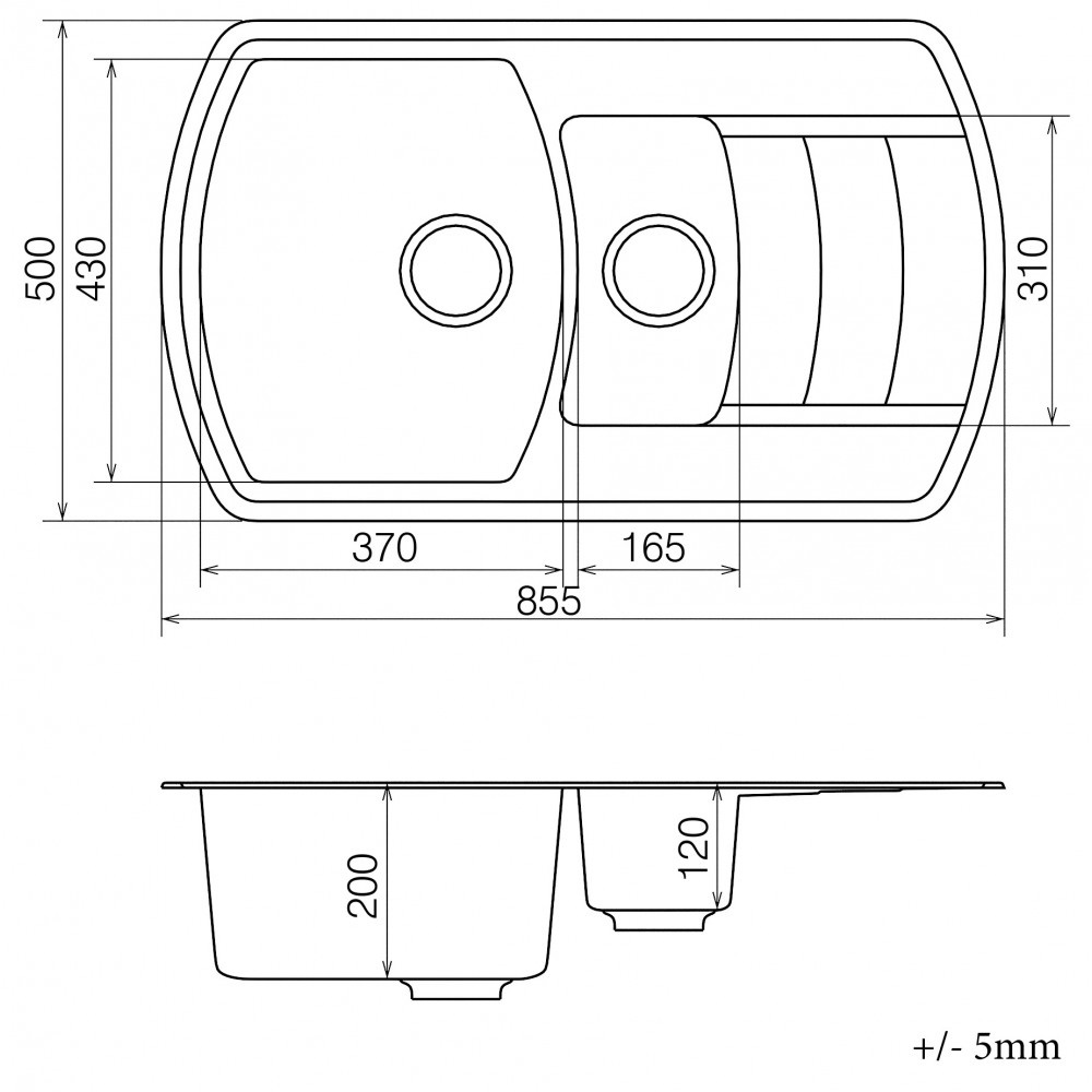 - без отверстия под смеситель