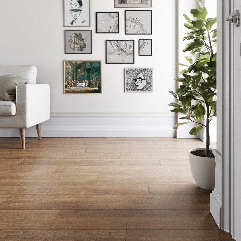 Прочный, надежный и выносливый ламинированный пол с декорами максимально приближенными к натуральному дереву с приятным разнообразием оттенков. Благодаря замкам высокого качества, покрытие смотрится цельно и естественно. За счет трехмерной структуры ламинат очень приятен внешне на ощупь. Все модели этой коллекций обладают 33 классом прочности, отличаются высокой стойкостью к истиранию и довольно значительным механическим воздействиям, ламинат не выгорает от действия солнечных лучей и не коробится от влаги.