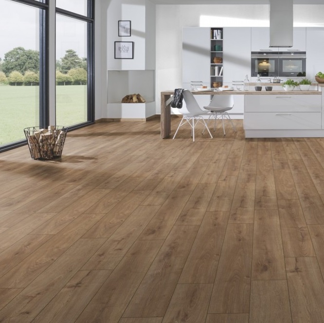 Компания Krono Original (Германия) является мировым лидером в производстве ламинированных напольных покрытий и постоянно разрабатывает все новые и улучшенные коллекции ламината. Различные декоры ламината по своему неповторимы и превосходны, благодаря улучшенным структурам поверхности. Переходы без швов придадут Вашему полу бесконечную красоту, а аутентичное тиснение добавит визуального сходства с натуральным паркетом и естественности на ощупь, плюс ко всему необычайный бриллиантовый блеск. Ламинат прочен и износостоек, его по праву можно назвать самым износостойким из существующих в настоящее время, что подтверждено множественными исследованиями и сертификатами качества. Применение новой системы Aqua Stop (пропитка HDF плиты, основы ламината, специальным средством), прекрасно защищают пол от набухания. Имеет очень хорошую теплопроводность и полностью подходит для системы теплых полов. Ламинат Krono Original® на 90% состоит из экологически чистой и натуральной древесины. Простота и легкость укладки благодаря защелкивающимся замкам TwinClic, TopClick и 1clic2go. Независимо от того, на какой коллекции ламината Krono Original Вы остановите свой выбор, это напольное покрытие будет радовать Вас много лет!