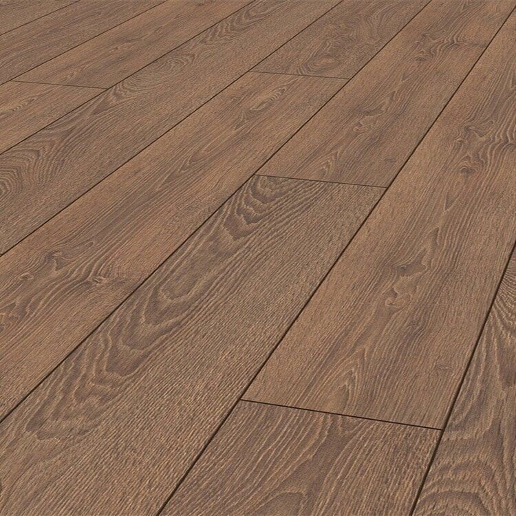 Коллекция ламинированного пола Mammut от немецкой фабрики Kronotex изготовлена из материала с древесно-волокнистой структурой и влагозащитными свойствами. Поверхность имеет глубокое структурное тиснение с типичным для дерева матово-глянцевым контрастом в оттенках бежевого, серого и коричневого цветов. Главной особенностью коллекции является особый подбор рисунков декоров под дуб - отличное решение для облицовки полов загородного дома. Большая длинна планок и фаска с четырех сторон планки добавляет особый эффект дощатого пола. 33-й класс устойчивости к истиранию поверхности позволяет использовать данный продукт для большинства жилых и коммерческих помещений. Эти полы выдерживают самые сильные нагрузки, универсальны в применении, обладают такими качествами как стойкость к термическому воздействию, царапинам, ультрафиолетовым лучам и точечным повреждениям.