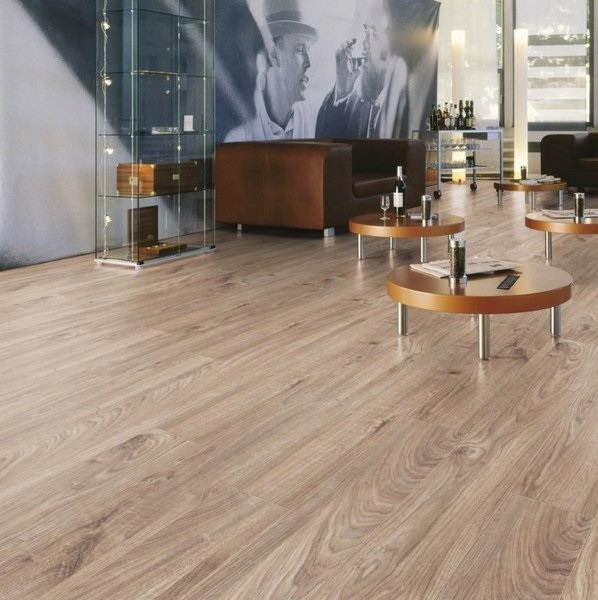 Коллекция ламинированного пола Mammut от немецкой фабрики Kronotex изготовлена из материала с древесно-волокнистой структурой и влагозащитными свойствами. Поверхность имеет глубокое структурное тиснение с типичным для дерева матово-глянцевым контрастом в оттенках бежевого, серого и коричневого цветов. Главной особенностью коллекции является особый подбор рисунков декоров под дуб - отличное решение для облицовки полов загородного дома. Большая длинна планок и фаска с четырех сторон планки добавляет особый эффект дощатого пола. 33-й класс устойчивости к истиранию поверхности позволяет использовать данный продукт для большинства жилых и коммерческих помещений. Эти полы выдерживают самые сильные нагрузки, универсальны в применении, обладают такими качествами как стойкость к термическому воздействию, царапинам, ультрафиолетовым лучам и точечным повреждениям.