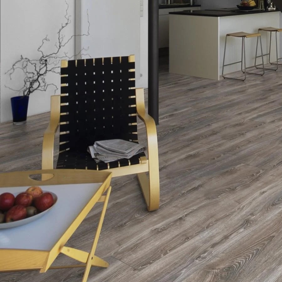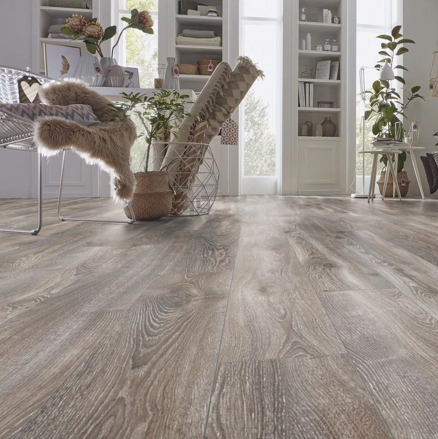 Коллекция ламинированного пола Mammut от немецкой фабрики Kronotex изготовлена из материала с древесно-волокнистой структурой и влагозащитными свойствами. Поверхность имеет глубокое структурное тиснение с типичным для дерева матово-глянцевым контрастом в оттенках бежевого, серого и коричневого цветов. Главной особенностью коллекции является особый подбор рисунков декоров под дуб - отличное решение для облицовки полов загородного дома. Большая длинна планок и фаска с четырех сторон планки добавляет особый эффект дощатого пола. 33-й класс устойчивости к истиранию поверхности позволяет использовать данный продукт для большинства жилых и коммерческих помещений. Эти полы выдерживают самые сильные нагрузки, универсальны в применении, обладают такими качествами как стойкость к термическому воздействию, царапинам, ультрафиолетовым лучам и точечным повреждениям.