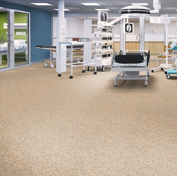 Grabo Fortis представляет собой гомогенное напольное покрытие толщиной 2 мм, с рисунком multikolor chips, поставляемое в рулонах.