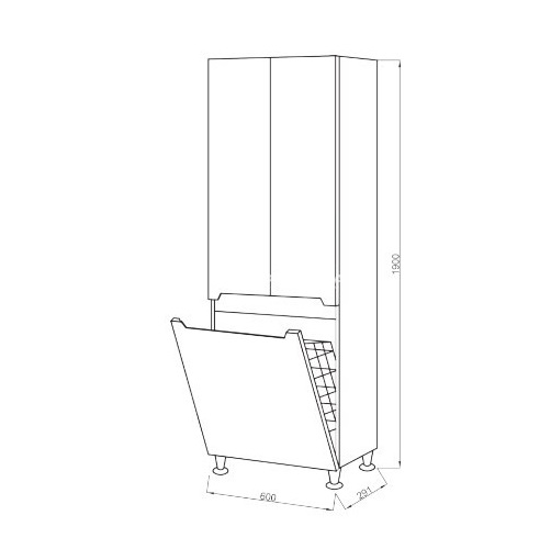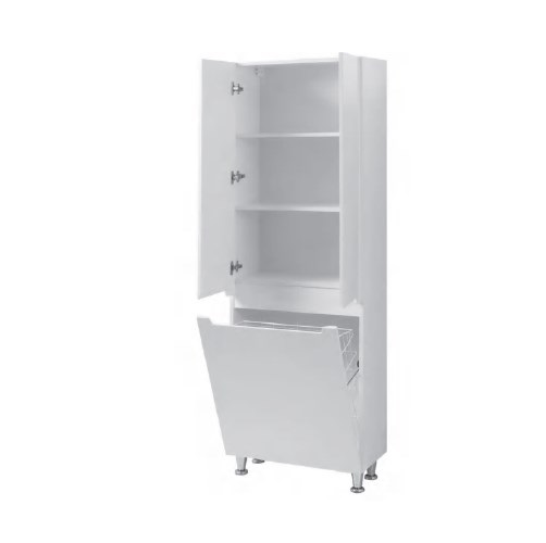 - верхние распашные дверцы на петлях с плавным закрыванием, внутри 2 полки, 1 откидная нижняя дверца с установленным бельевым ящиком, ручки интегрированные, 4 ножки в комплекте