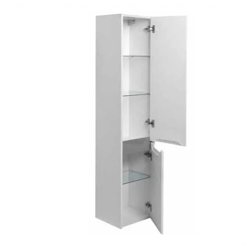 - 1 верхняя распашная дверца на петлях с плавным закрыванием, внутри 2 стеклянные полки тол. 5 мм, 1 нижняя распашная дверца на петлях с плавным закрыванием, внутри 1 стеклянная полка тол. 5 мм, интегрированные ручки не выступают за пределы фасада