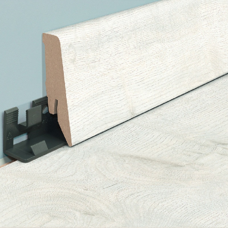 Воспользуйтесь творческой свободой, которую предлагает Mystyle. Современная ламинатная панель имеет высоту 58 мм и покрывает 18 мм пространства на полу. С помощью наших простых в установке пластиковых зажимов панели можно незаметно прикрепить к стене. Зажим также можно использовать для прокладки четырехканального кабеля. Конечно, ко всем декорам Mystyle прилагается соответствующий плинтус.