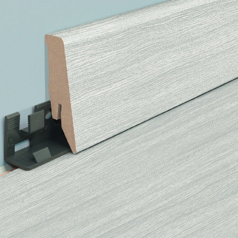 Воспользуйтесь творческой свободой, которую предлагает Mystyle. Современная ламинатная панель имеет высоту 58 мм и покрывает 18 мм пространства на полу. С помощью наших простых в установке пластиковых зажимов панели можно незаметно прикрепить к стене. Зажим также можно использовать для прокладки четырехканального кабеля. Конечно, ко всем декорам Mystyle прилагается соответствующий плинтус.