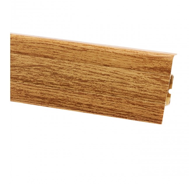 Плинтус изготовлен из высококочественного ПВХ, состоящий из двух частей. Линия соединения нижней части и верхней остается незаметной,тем самым создавая более эстетичный вид. Используется для скрытия зазора между стеной и полом, а также для защиты стен при влажной или обычной уборке. Также может использоваться и в качестве самостоятельного декоративного элемента. Крепление плинтуса происходит при помощи клипс и этот способ является наиболее простым способом.