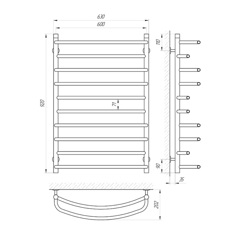 - имеет 10 перемычек, размещение равномерное, расстояние между перемычками 600 мм