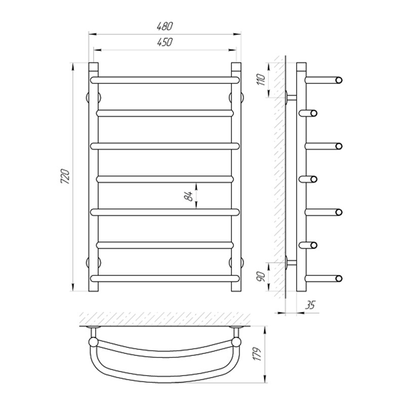 - имеет 7 перемычек, размещение равномерное, расстояние между перемычками 450 мм