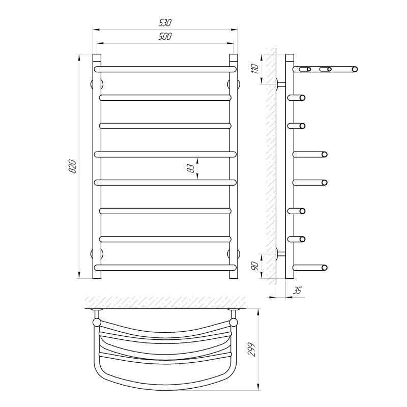 Полотенцесушитель Laris Евромикс П8, с верхней полочкой.