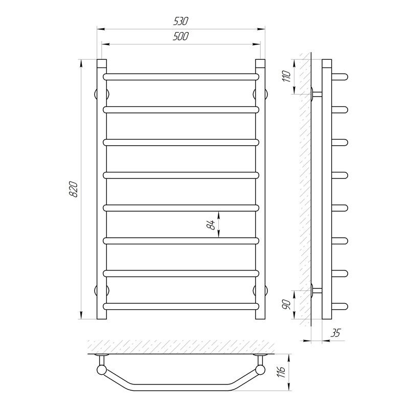 Полотенцесушитель Laris Виктория П8 (71207049) бронза