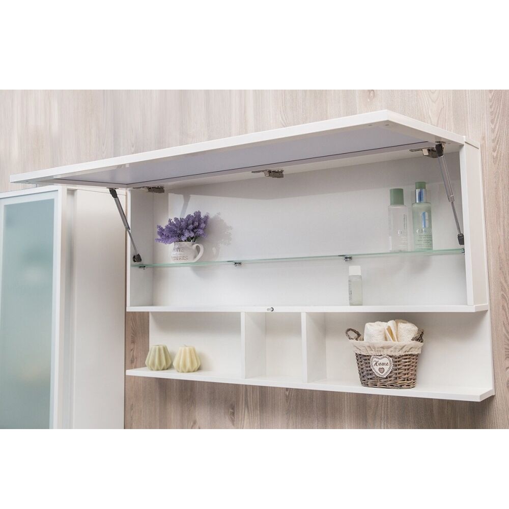 - верхняя подъемная дверца, фурнитура с доводчиками (плавное открытие/закрытие), внутри 1 стеклянная полка, нижняя открытая полочка из ДСП