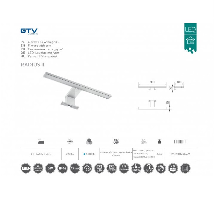 - светильник крепится непосредственно двумя саморезами (идут в комплекте) в корпус зеркала, подключение светильника происходит напрямую в сеть 220V (двойной провод длиною 30 см), который не имеет вилки и собственного выключателя