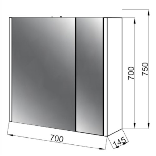 - ширина 700 мм, высота 720 мм, глубина 145 мм