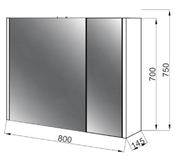 - ширина 800 мм, высота 720 мм, глубина 145 мм