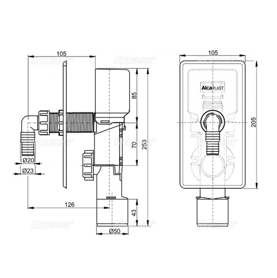 - Сифон под штукатурку для стиральной машины Alca plast APS4.