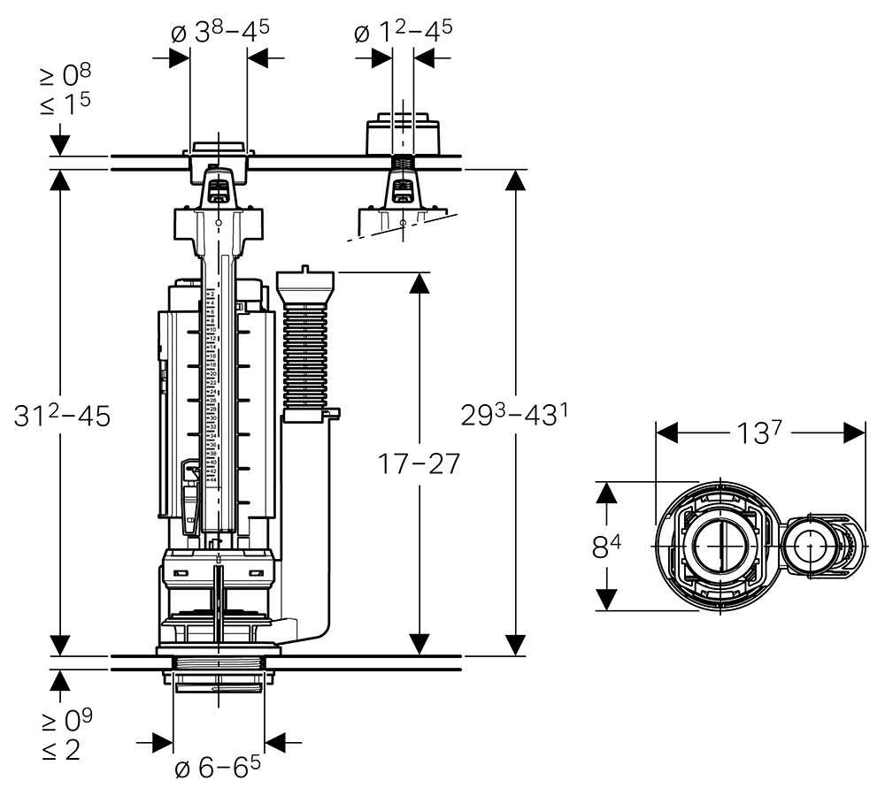 - в комплект входят крепёжные элементы бачка к унитазу и ключ, данный механизм слива применяется для замены арматуры в керамических бачках унитазов высотой 295-450 мм: DURAVIT (Дуравит), GUSTAVSBERG (Густавсберг), VILLEROY & BOCH и другие европейские производители