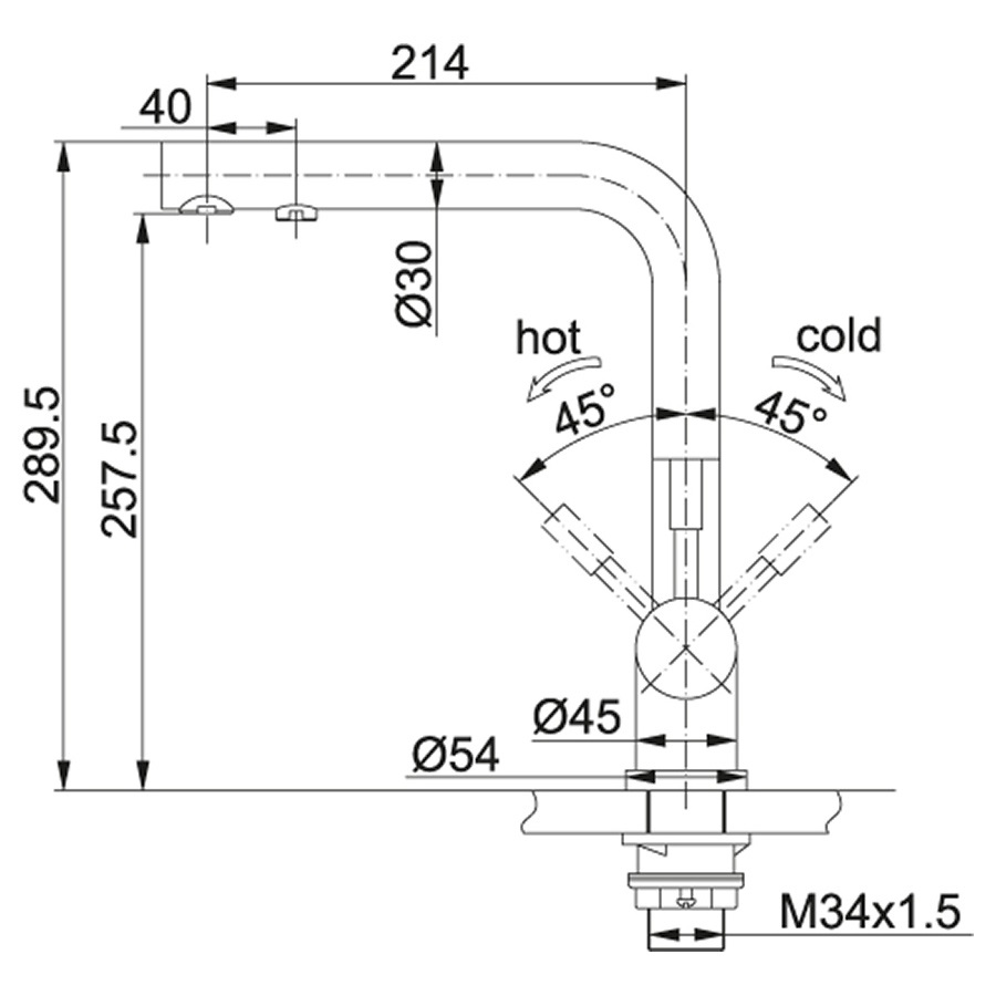 - общая высота 289.5 мм, излив: высота 257.5 мм, длина 214 мм