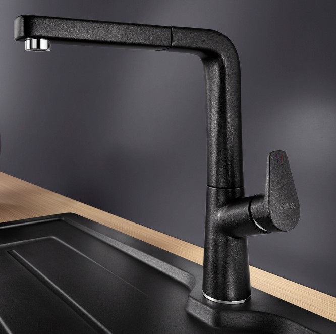 - общая высота 273 мм, поворотный излив 190°: высота 248 мм, длина 193 мм, шланг выдвижного излива в текстильной оплетке