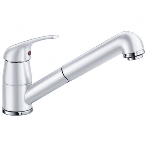 - общая высота смесителя 150 мм, поворотный излив 90°: высота 160 мм, длина 214 мм, шланг выдвижного излива в нейлоновой оплетке