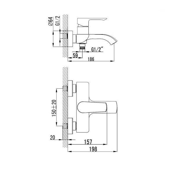 - эксцентрический подвод G 1/2 межцентровое расстояние 150 мм ± 12 мм