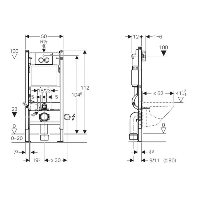 - смывной бачок GD2 6/9 л, заводская настройка 6/ 3 л, подключение воды слева, справа и сзади, пневматический смывной клапан с тремя режимами слива: 2-х объёмный, старт/стоп или непрерывный