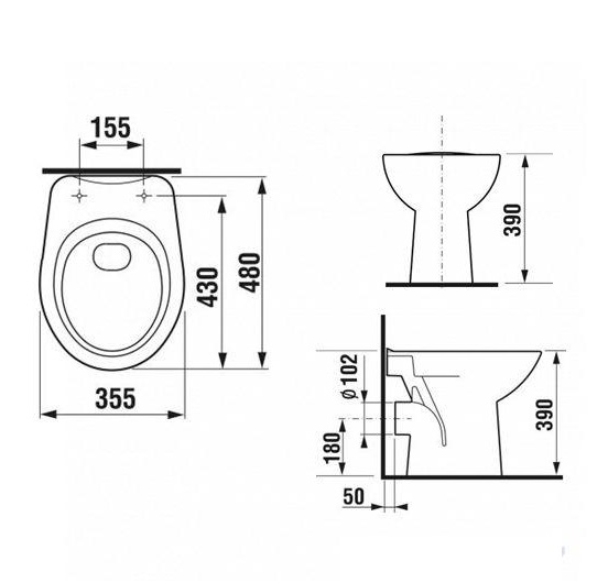 Чаша унитаза Jika Zeta, требуется система инсталляции.