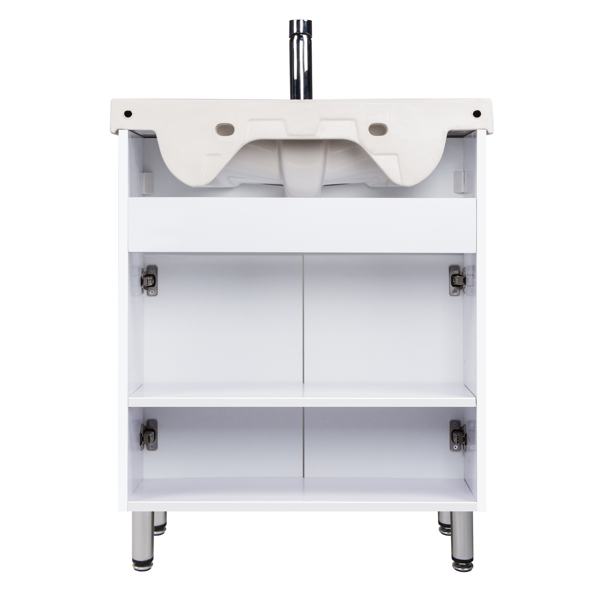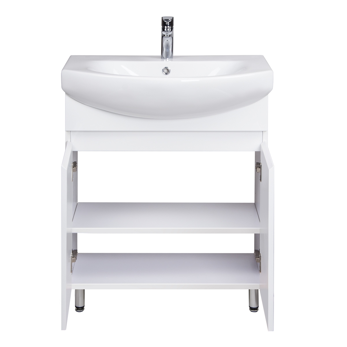 - 2 распашные дверцы, внутри 1 полка из ДСП (регулируемая по высоте), для навешивания дверей используются петли с доводчиками Hefele (Германия), 4 хромированные ножки в комплекте (высота 110 мм, регулируются по высоте)