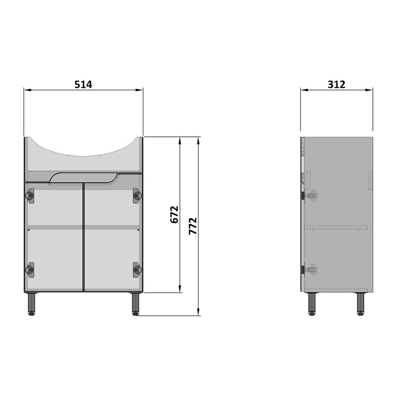 - распашные дверцы с механизмом плавного закрывания, съёмная полка, 4 регулируемые ножки