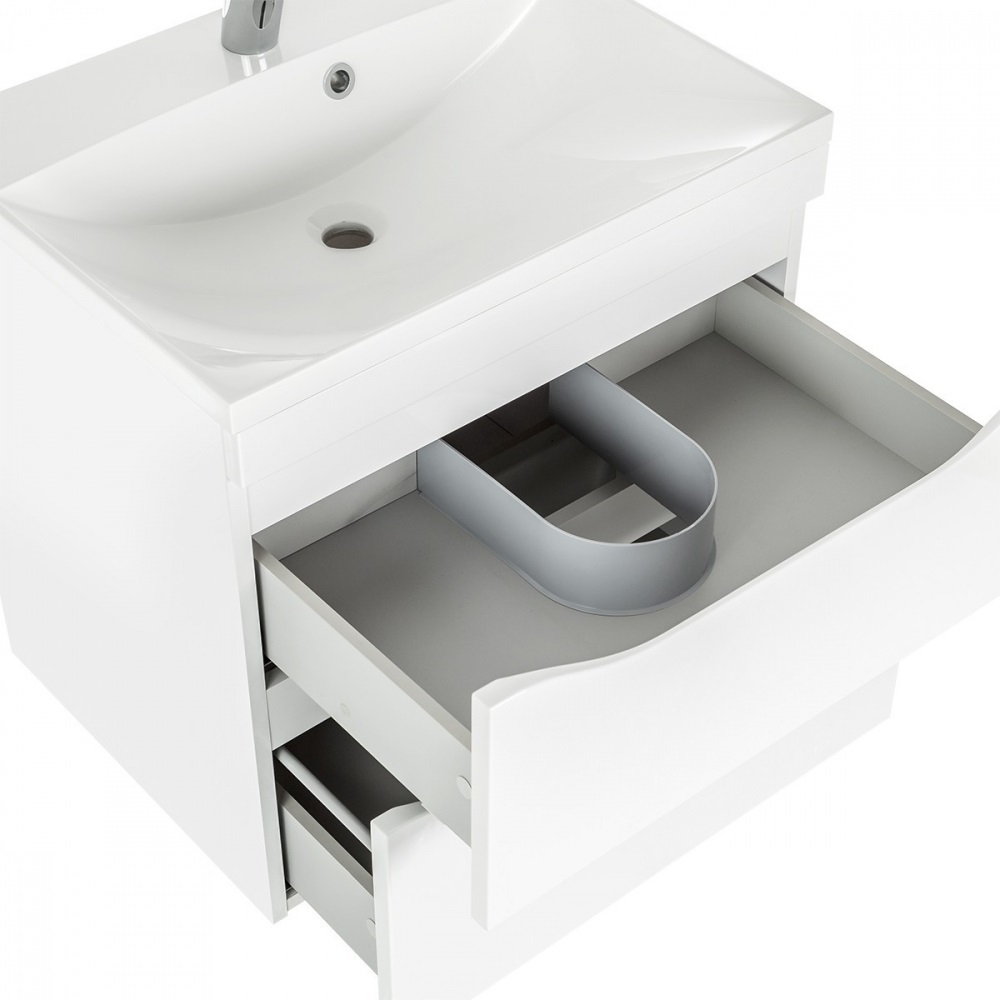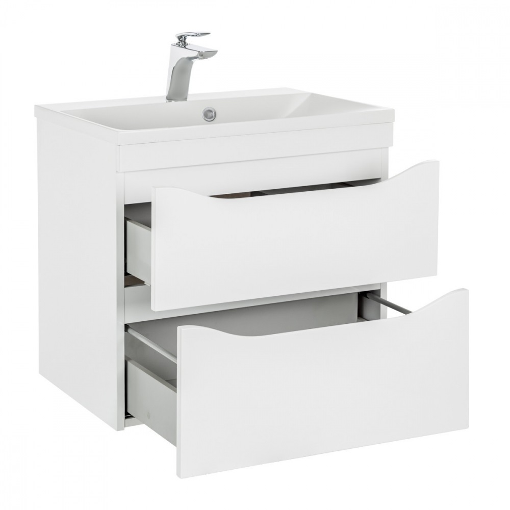 - фасад - влагостойкий окрашеный МДФ 19 мм (покрытие эмаль), корпус - влагостойкий ДСП 16 мм, фурнитура Blum Австрия, 2 выдвижных ящика с доводчиками, цвет: белый / белый + серые вставки в местах ручек
