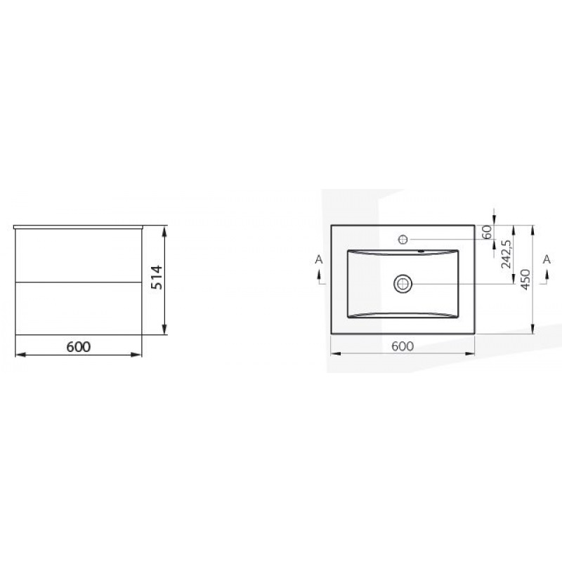 - размер тумбы: ширина 600 мм, глубина 450 мм, высота 514 мм