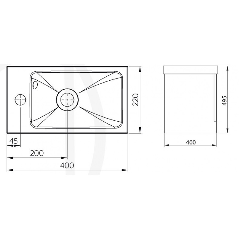 - размер тумбы: ширина 400 мм, глубина 220 мм, высота 495 мм