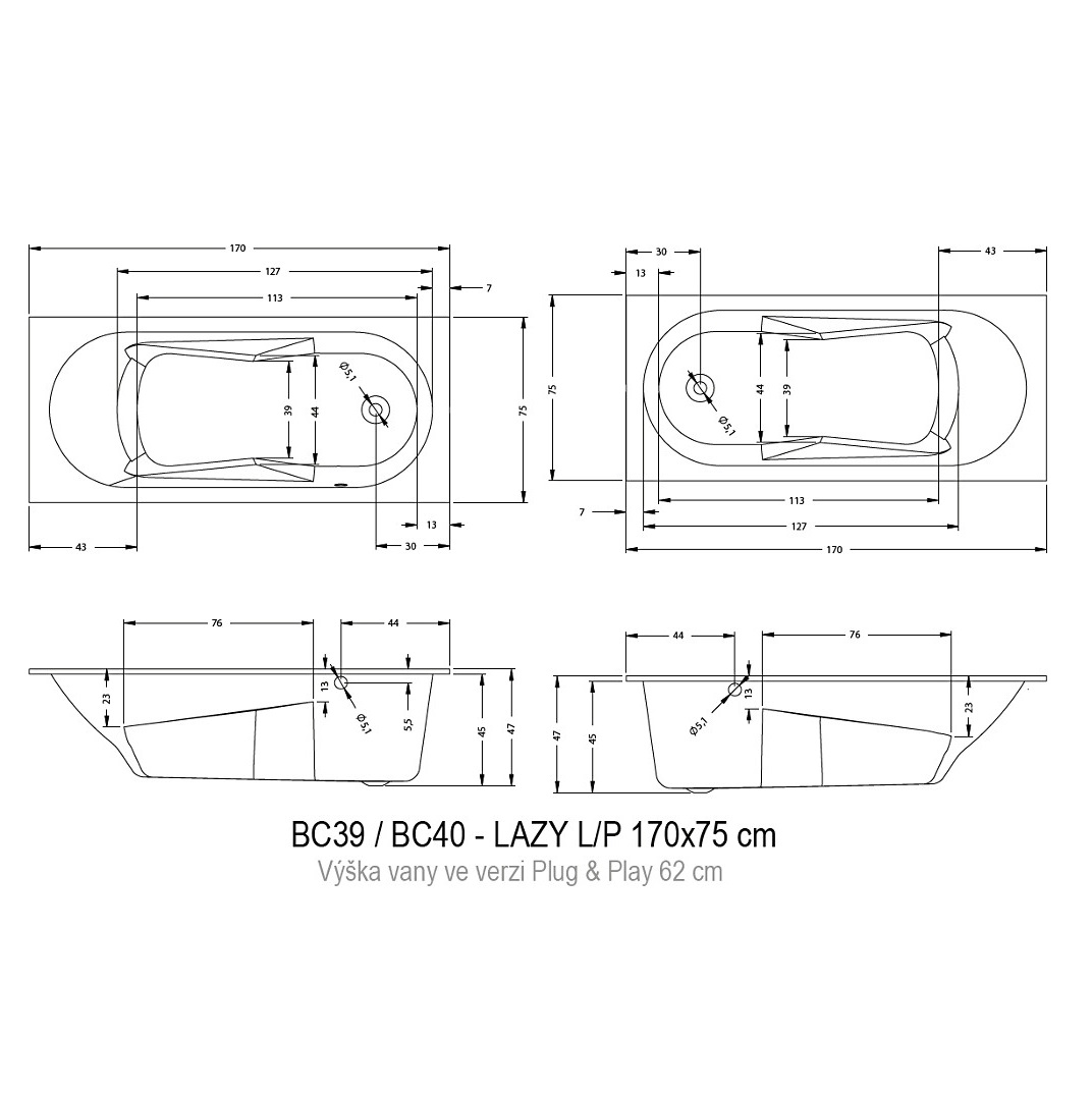 - 170 x 75 x 47 см, об'єм ванни 160 л