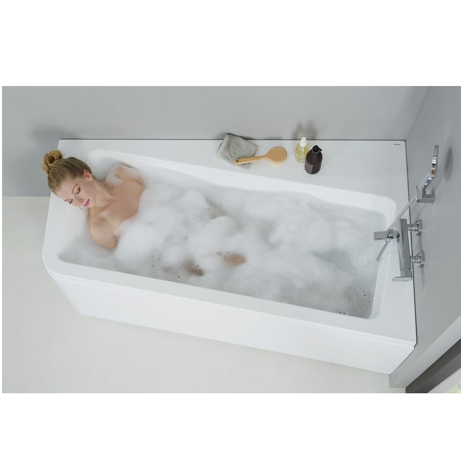 Погляд під новим кутом. Дизайнер Kryštof Nosál взяв класичну прямокутну ванну і повернув її на 10°. Так ванна здається ближчою, її нетипове розташування пропонує нові можливості з погляду практичності - більшу поверхню для речей, яку можна використовувати як сидіння. Ванна 10° належить до однієї з концепцій для всієї ванної кімнати, що отримала безліч нагород. Усі вироби 10° ґрунтуються на принципі легкого повороту, який наділяє їх новими цінностями, як естетичною, так і практичною. Асиметрична ванна для всіх тих, хто віддає перевагу класичним функціональним ваннам.