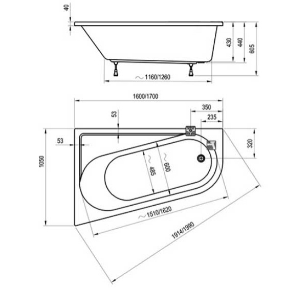 - додаткові опції: шторка для ванни: VS3, фронтальна/бічна панель, зливний комплект для ванн, ніжки (опора для ванн)