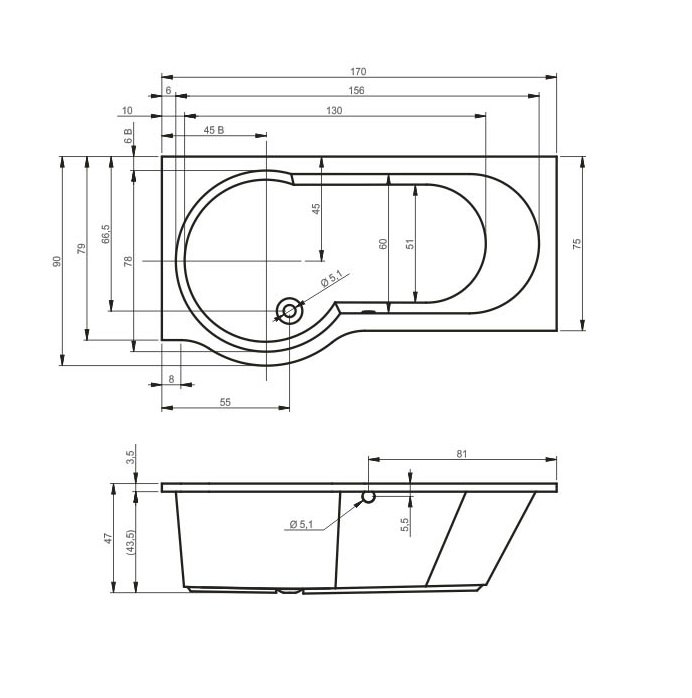 Ванна Riho Dorado 170х75 права