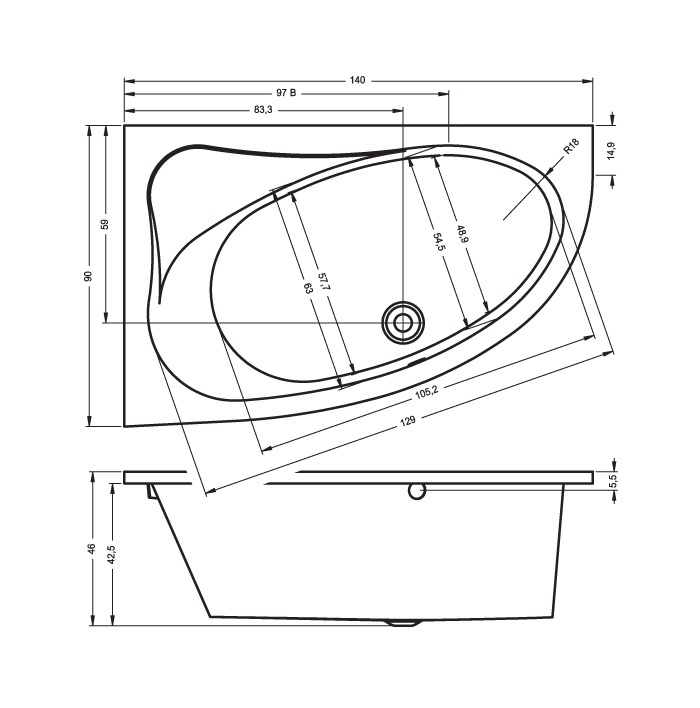 Ванна Riho Lyra 140х90 права