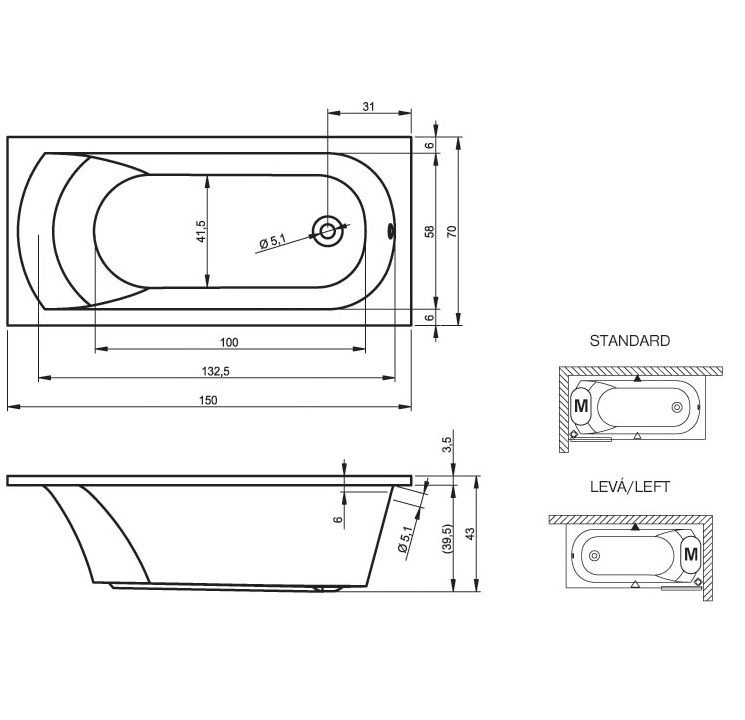 - опційно: душова штора, освітлення, масажні системи Hit, Top, Pro